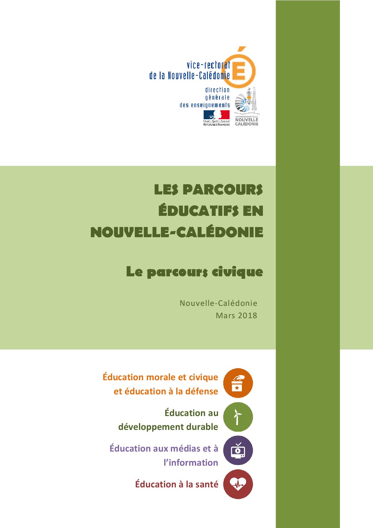 Par le vote de la délibération 106 le 15 janvier 2016, le Congrès de la Nouvelle Calédonie a institué un parcours civique pour tous les élèves calédoniens.